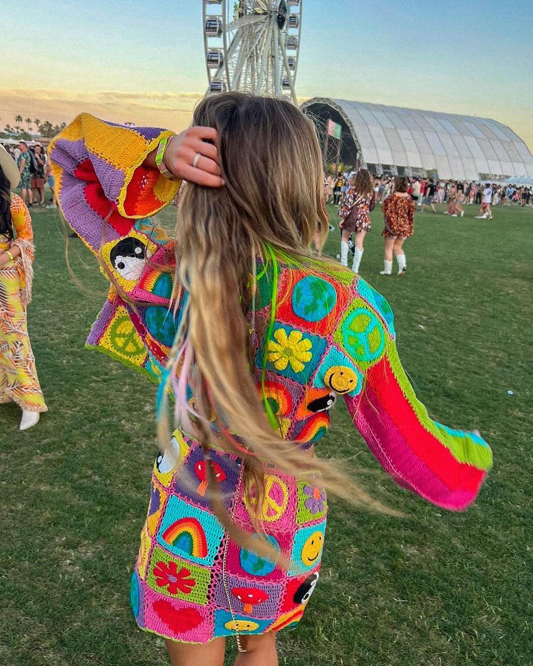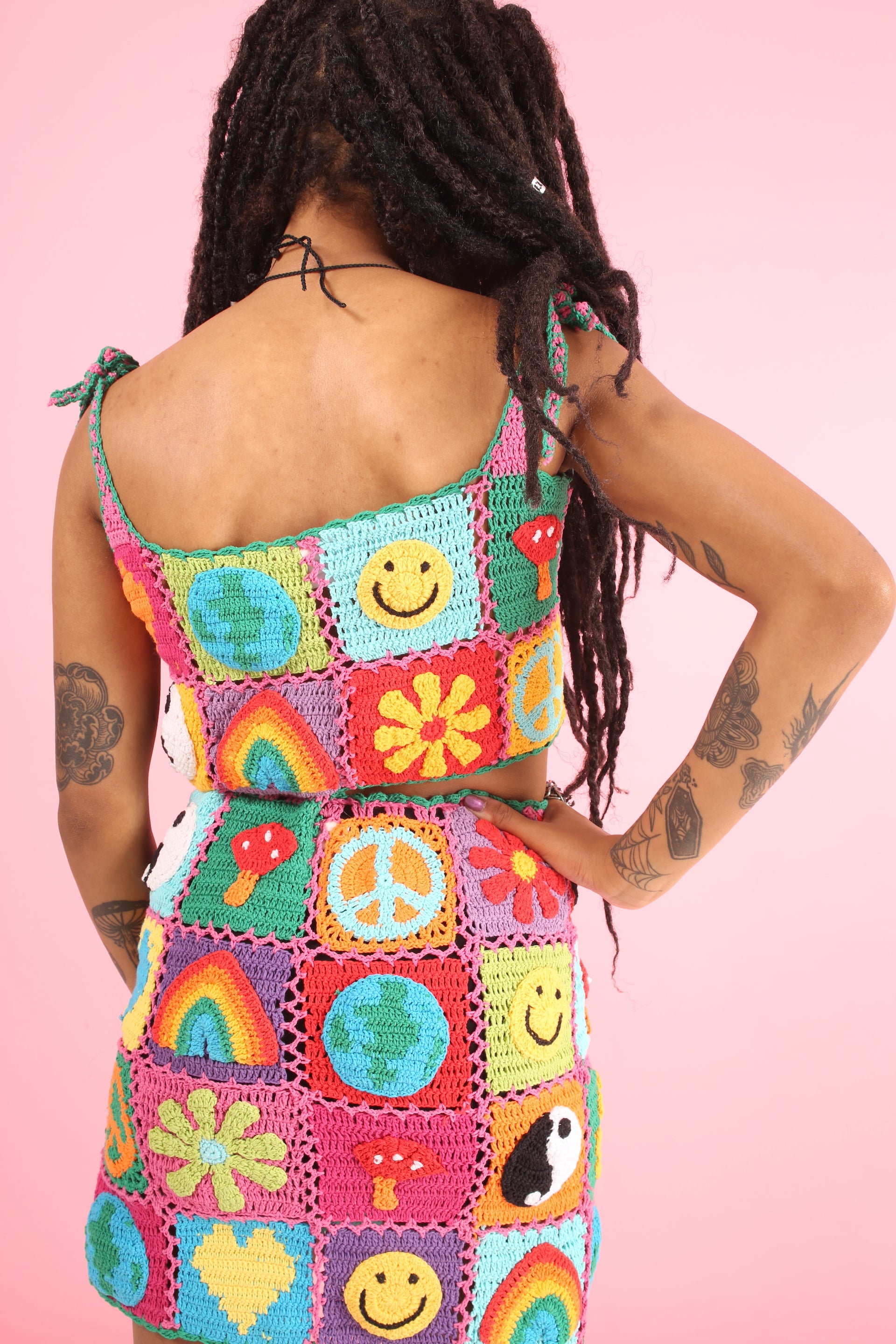 With super cute yin yang, mushroom, earth, peace, smiley, heart + flower patches.