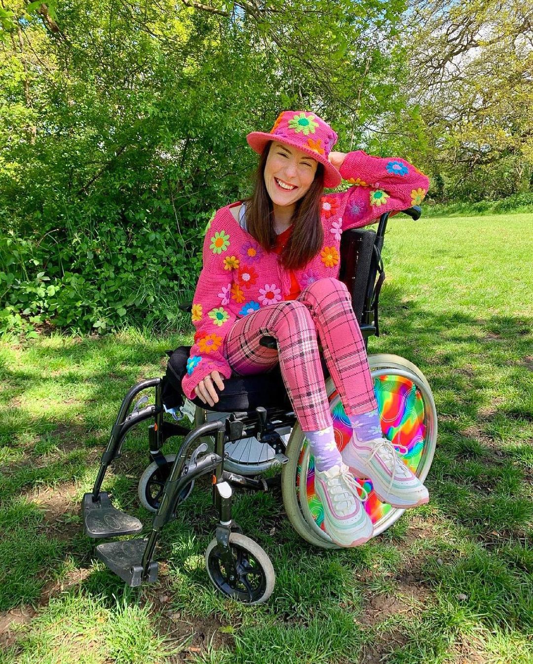 Our best selling Lady Garden cardigan in PINK! The cutest cropped cardi with rainbow daisy patches all over. Completely handmade.